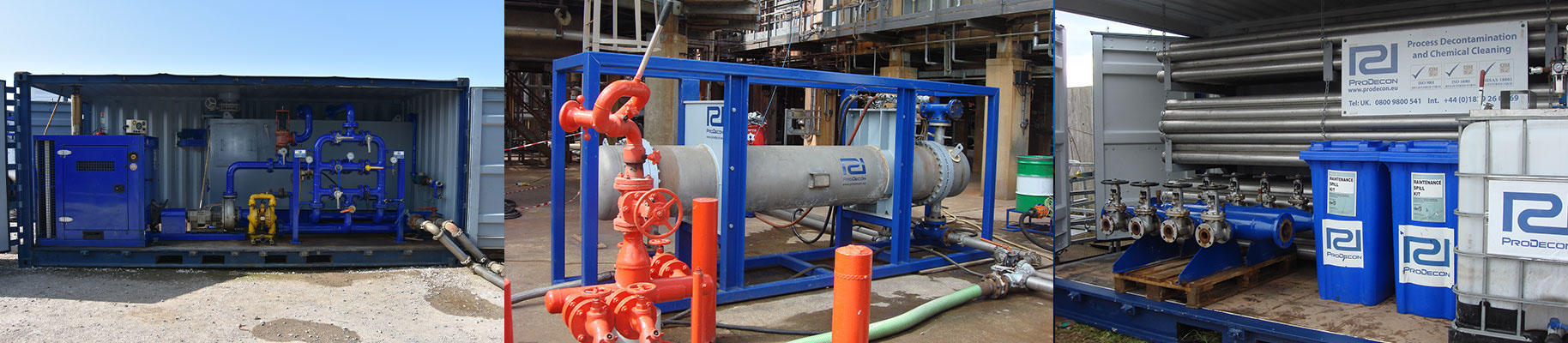 Chemistry is selected specifically to meet the system metallurgy and the nature of the foulant to be removed. Selecting from a range of degreasers, acids, bases and solvents the process is designed either as a single stage or multi stage process to effectively remove the contaminants and leave the system clean and passivated . Our chemists control the process using on-site chemical analysis to maintain the operating parameters in the operating range and to determine the end point of the process. Understanding the importance of not only the chemical reaction but also the application. ProDecon provide their own circulation pumps and piping to ensure correct flow rates are maintained throughout the system ensuring effective chemical contact and removal of contaminants. All effluent is safely contained and disposed of through licensed disposal routes.